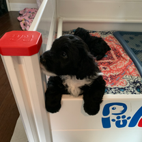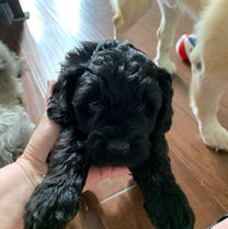 Chloe is the smallest of our mini litter from Charlie and Riley, expected adult weight between 25-35 pounds. Chloe is a female F1B min Sheepadoodle, she loves to snuggle and she loves to run and play. smuggler. loves to run and play