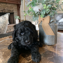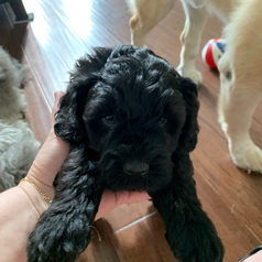 Our F-1 Mini Sheepadoodles are highly coveted because of being originally bred with pure bred sheepdog, then bred back to pure bred poodle. They are highly sought after because of their multigenerational traits and smaller size. They are hypoallergenic,, and non shedding coat. (What this actually means for canines is they don't shed like most fur sheds, rather there will be hair in brushes, similar to how human's hair sheds. there is no such thing as zero shedding but these pups are as close as you can get, and allergy free) This generation is extremely dependable and sweet. Sheepadoodles originated as an experimental military dog in the 1960s by the US Army. They were sought after for their intelligence, keen intuitive nature, loyalty, and bravery.They were also used for Service Dogs for the blind, utilizing their natural abilities. They are highly intelligent and easy to train. They are a multi-generation Sheepadoodle, this category tends to have healthy genes, as crossbreeding expands their gene pool making them less susceptible to genetic diseases. Sheepadoodles are sometimes said to have soulful eyes, as they like to look directly at their owners. They are known to be very affectionate and "huggable". Many times they are referred to as teddy bears because of their fluffy looks and snuggly personality. This Breed is highly intelligent, easy to train, very lovable, and wrapped up in a more compact size, it makes the Mini Sheepadoodle a highly sought after choice for families, as well as, those looking for service and therapy dogs. Check out the additional candid photos and video updates to see how much they are learning day to day. Their personalities are beginning to show. They are adorable! Pricing page is available for more information.